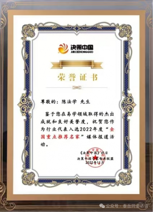 从踏遍山河寻访名师的求学者,到桃李满天下的国学讲师,陈法学用数十年坚守诠释了传承的真谛。他始终认为,传统文化的生命力在于 “传而有承、承而有用”,而教育正是连接传统与未来的桥梁。在他的引领下,越来越多的年轻人走进易学、读懂国学,让古老文化在新时代焕发出蓬勃生机,也为中华优秀传统文化的薪火相传注入了源源不断的新生力量。