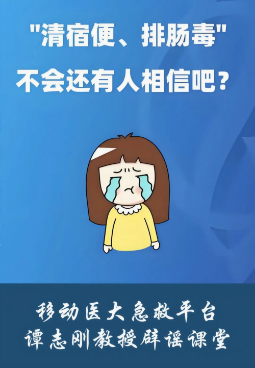 谭志刚教授提醒您:网上所谓的要“清宿便,排肠毒”,不然会造成腹部赘肉和体重增加,还会有黄褐斑、老年斑甚至会引发恶变……这些通通都是商家售卖保健品的营销手段!这样说是为了售卖产品而混淆概念。乱吃保健品、泻药、“洗肠”等不仅乱花钱,最重要的是破坏肠道内环境,耽误真正病情的诊断和治疗!